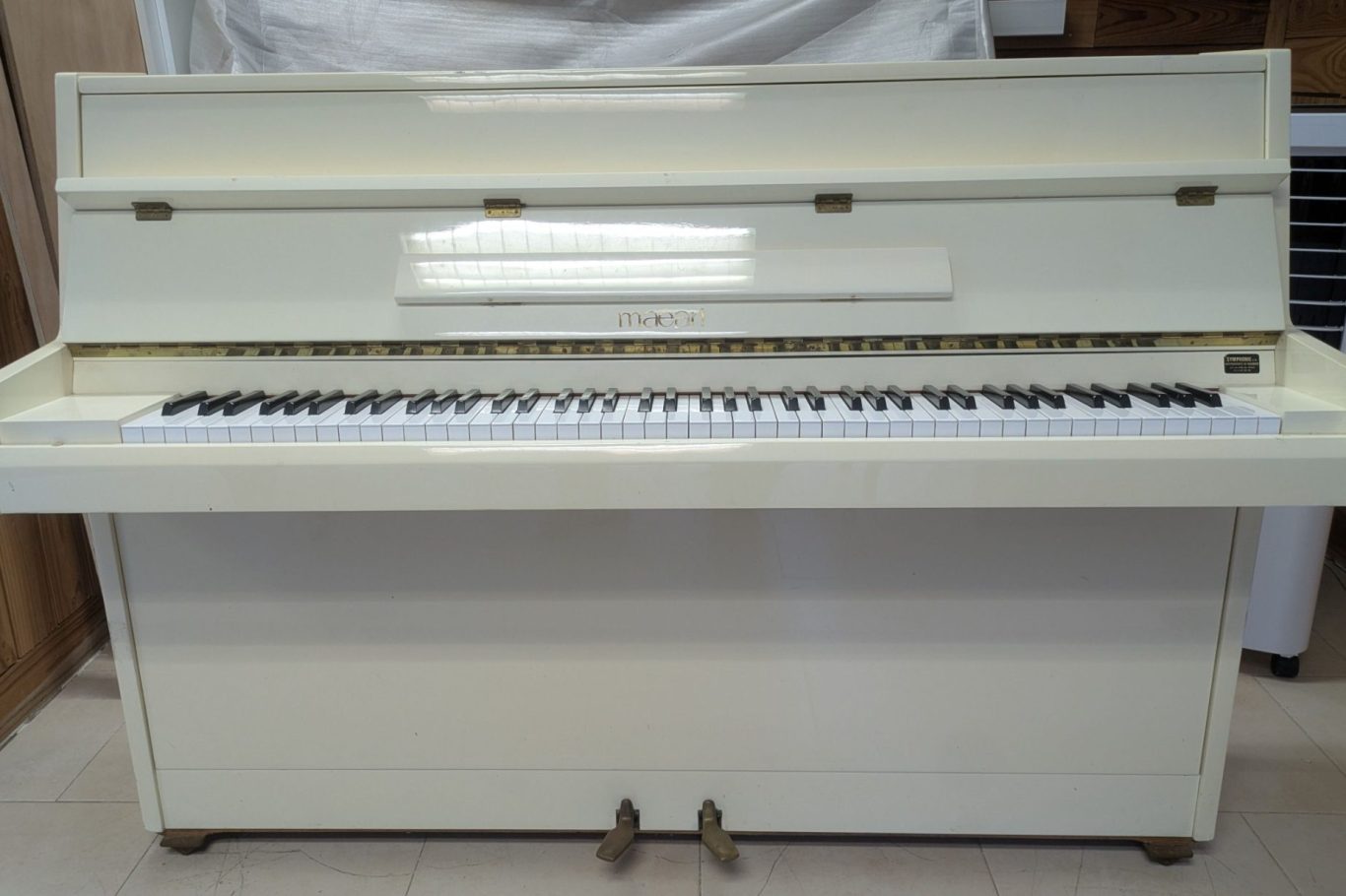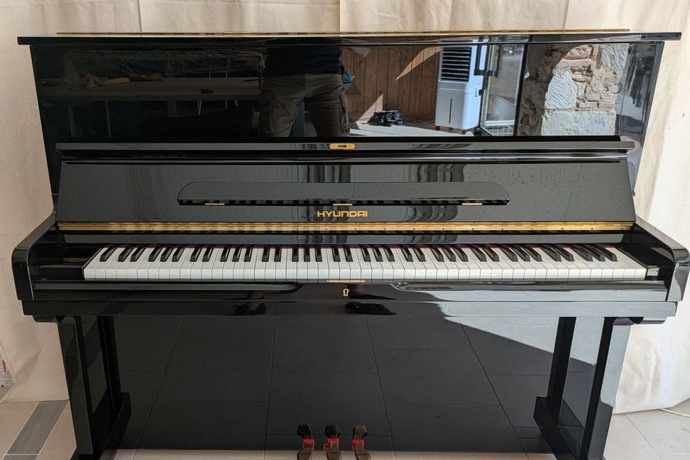 Piano d'occaion HYUNDAI (Corée du Sud) laqué polyester noir brillant entièrement révisé, feutres des marteaux neufs, ainsi que les feutres du clavier. Un instrument de travail très intéressant avec une belle rondeur harmonique. Prix de vente livré dans un rayon de 20 km. .